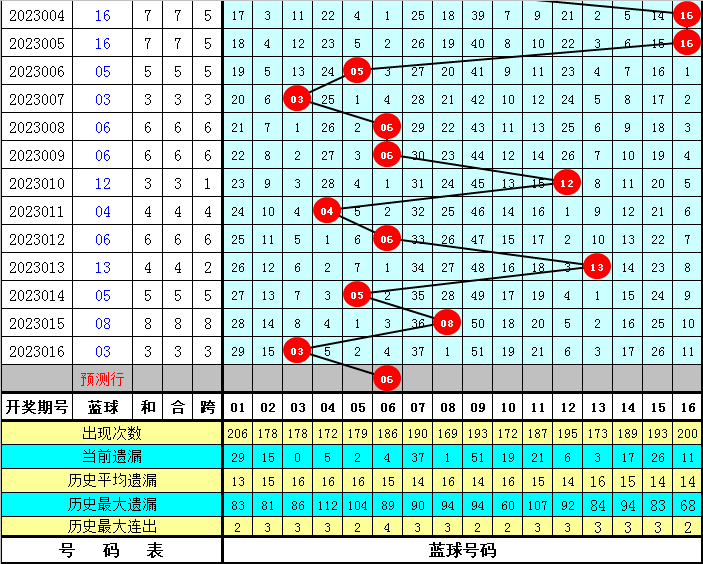 福彩双色球第2023017期蓝球号码参考:01 02 03 05 06 07 08 10 13 14 15 16